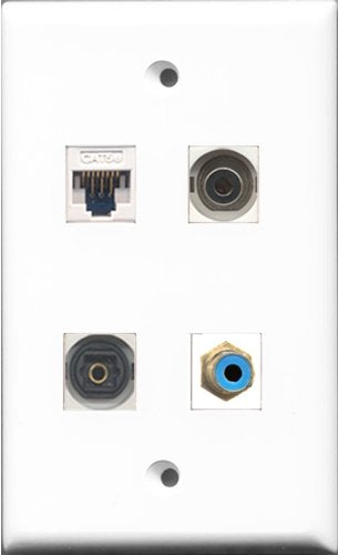RiteAV - 1 Port RCA Blue and 1 Port Toslink and 1 Port 3.5mm and 1 Port Cat5e Ethernet White Wall Plate