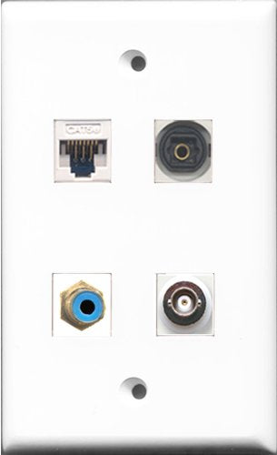 RiteAV 1 Port RCA Blue and 1 Port Toslink and 1 Port BNC and 1 Port Cat5e Ethernet White Wall Plate