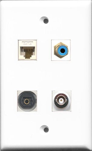 RiteAV 1 Port RCA Blue and 1 Port Toslink and 1 Port BNC and 1 Port Cat6 Ethernet White Wall Plate