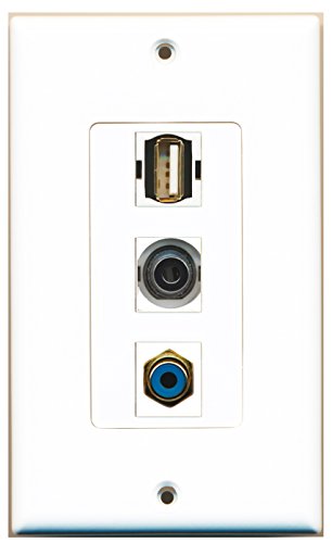 RiteAV - 1 Port RCA Blue and 1 Port USB A-A and 1 Port 3.5mm Decorative Wall Plate Decorative