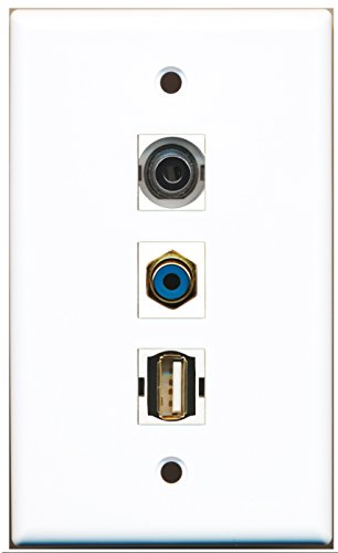 RiteAV - 1 Port RCA Blue and 1 Port USB A-A and 1 Port 3.5mm Wall Plate