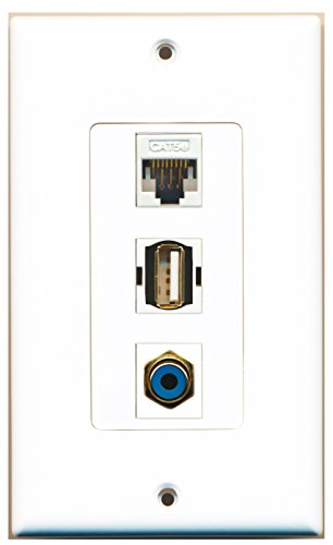 RiteAV - 1 Port RCA Blue and 1 Port USB A-A and 1 Port Cat5e Ethernet White Decorative Wall Plate Decorative