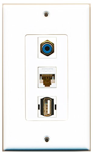RiteAV - 1 Port RCA Blue and 1 Port USB A-A and 1 Port Cat6 Ethernet White Decorative Wall Plate Decorative