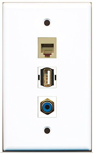 RiteAV - 1 Port RCA Blue and 1 Port USB A-A and 1 Port Phone RJ11 RJ12 Beige Wall Plate