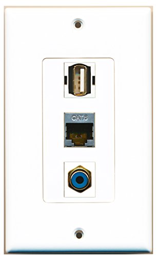 RiteAV - 1 Port RCA Blue and 1 Port USB A-A and 1 Port Shielded Cat6 Ethernet Decorative Wall Plate Decorative