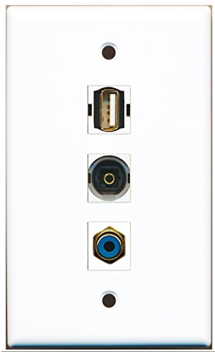 RiteAV - 1 Port RCA Blue and 1 Port USB A-A F/F and 1 Port Toslink Digital Audio Wall Plate