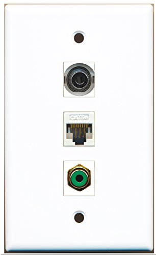 RiteAV - 1 Port RCA Green 1 3.5mm 1 Cat5e Ethernet White Wall Plate