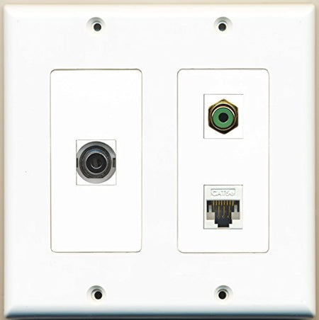 RiteAV - 1 Port RCA Green 1 Port 3.5mm 1 Port Cat5e Ethernet White - 2 Gang Wall Plate