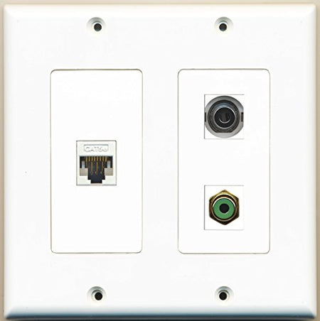 RiteAV - 1 Port RCA Green 1 Port 3.5mm 1 Port Cat5e Ethernet White - 2 Gang Wall Plate