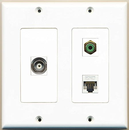 RiteAV - 1 Port RCA Green 1 Port BNC 1 Port Cat5e Ethernet White - 2 Gang Wall Plate