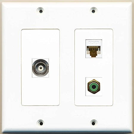 RiteAV - 1 Port RCA Green 1 Port BNC 1 Port Cat6 Ethernet White - 2 Gang Wall Plate