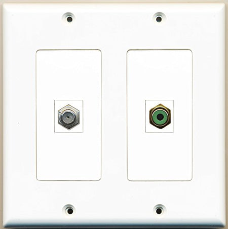 RiteAV - 1 Port RCA Green 1 Port Coax Cable TV- F-Type - Dual Gang Wall Plate