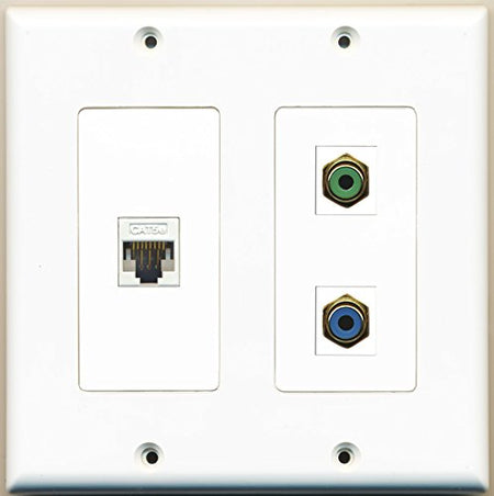 RiteAV - 1 Port RCA Green 1 Port RCA Blue 1 Port Cat5e Ethernet White - 2 Gang Wall Plate
