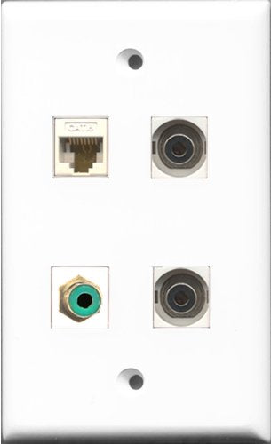 RiteAV 1 Port RCA Green 2 Port 3.5mm and 1 Port Cat6 Ethernet White Wall Plate