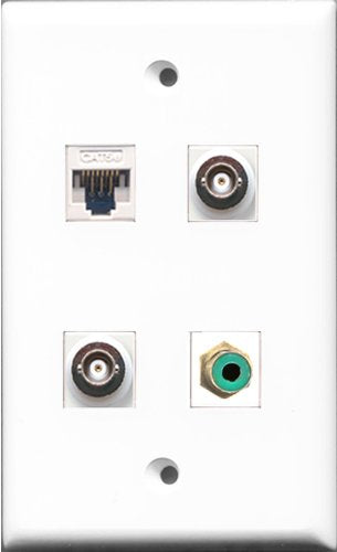 RiteAV - 1 Port RCA Green 2 Port BNC and 1 Port Cat5e Ethernet White Wall Plate
