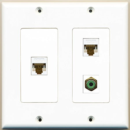 RiteAV - 1 Port RCA Green 2 Port Cat6 Ethernet White - 2 Gang Wall Plate