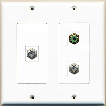 RiteAV - 1 Port RCA Green 2 Port Coax Cable TV- F-Type - 2 Gang Wall Plate