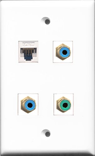 RiteAV 1 Port RCA Green 2 Port RCA Blue and 1 Port Cat5e Ethernet White Wall Plate