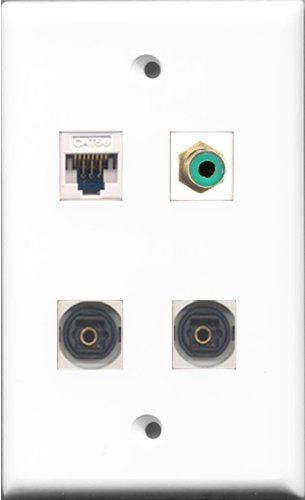 RiteAV 1 Port RCA Green 2 Port Toslink and 1 Port Cat5e Ethernet White Wall Plate