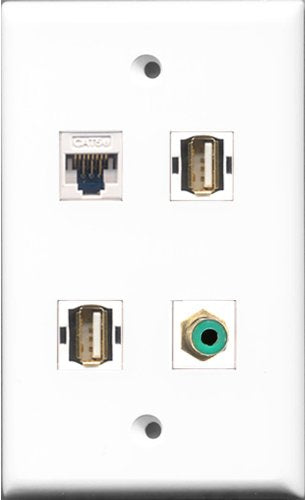 RiteAV 1 Port RCA Green 2 Port USB A-A and 1 Port Cat5e Ethernet White Wall Plate