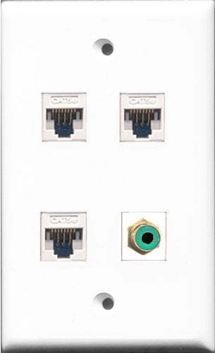 RiteAV - 1 Port RCA Green 3 Port Cat5e Ethernet White Wall Plate