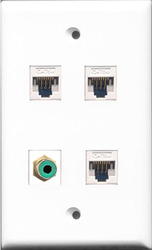 RiteAV - 1 Port RCA Green 3 Port Cat5e Ethernet White Wall Plate
