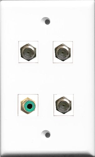 RiteAV 1 Port RCA Green 3 Port Coax Cable TV- F-Type Wall Plate