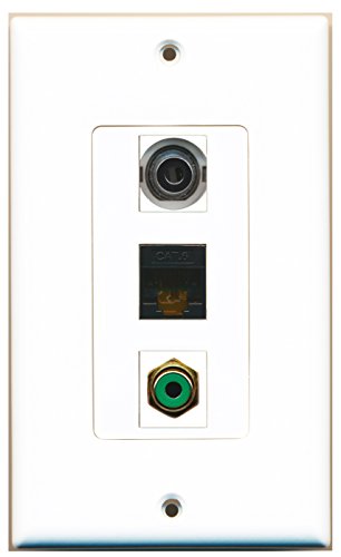 RiteAV - 1 Port RCA Green and 1 Port 3.5mm and 1 Port Cat6 Ethernet Black Decorative Wall Plate Decorative