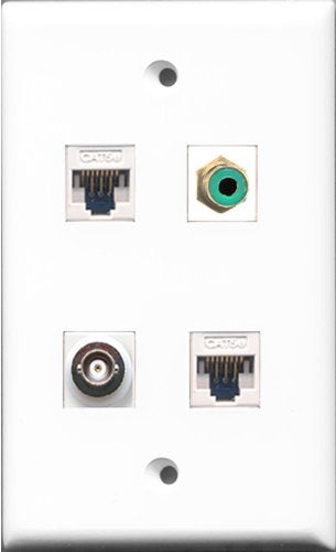 RiteAV 1 Port RCA Green and 1 Port BNC 2 Port Cat5e Ethernet White Wall Plate