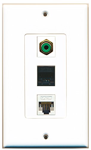 RiteAV - 1 Port RCA Green and 1 Port Cat5e Ethernet White and 1 Port Cat5e Ethernet Black Wall Plate Decorative