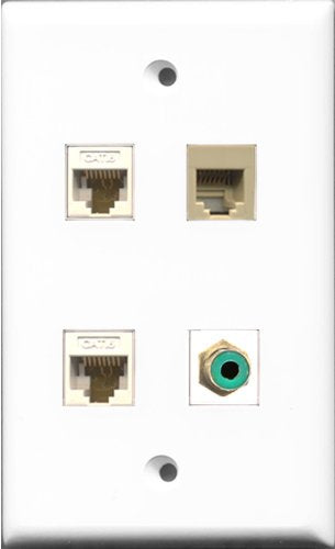RiteAV 1 Port RCA Green and 1 Port Phone RJ11 RJ12 Beige 2 Port Cat6 Ethernet White Wall Plate