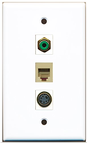 RiteAV - 1 Port RCA Green and 1 Port Phone RJ11 RJ12 Beige and 1 Port S-Video Wall Plate