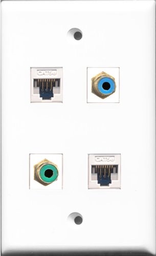 RiteAV 1 Port RCA Green and 1 Port RCA Blue 2 Port Cat5e Ethernet White Wall Plate