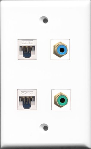 RiteAV 1 Port RCA Green and 1 Port RCA Blue 2 Port Cat5e Ethernet White Wall Plate