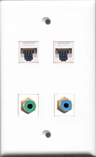 RiteAV - 1 Port RCA Green and 1 Port RCA Blue 2 Port Cat5e Ethernet White Wall Plate