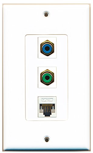 RiteAV - 1 Port RCA Green and 1 Port RCA Blue and 1 Port Cat5e Ethernet White Decorative Wall Plate Decorative