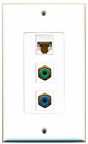 RiteAV - 1 Port RCA Green and 1 Port RCA Blue and 1 Port Cat6 Ethernet White Decorative Wall Plate Decorative