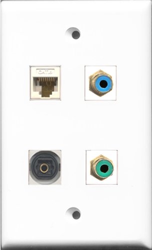 RiteAV 1 Port RCA Green and 1 Port RCA Blue and 1 Port Toslink and 1 Port Cat6 Ethernet White Wall Plate