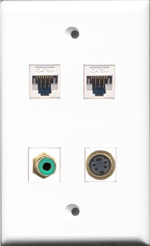 RiteAV - 1 Port RCA Green and 1 Port S-Video 2 Port Cat5e Ethernet White Wall Plate