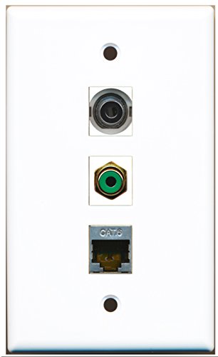 RiteAV - 1 Port RCA Green and 1 Port Shielded Cat6 Ethernet and 1 Port 3.5mm Wall Plate
