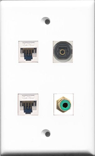 RiteAV 1 Port RCA Green and 1 Port Toslink 2 Port Cat5e Ethernet White Wall Plate
