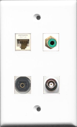 RiteAV - and 1 Port RCA Green and 1 Port Toslink Digital Audio and 1 Port BNC and 1 Port Cat6 Ethernet White Wall Plate