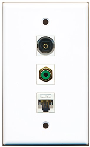 RiteAV - 1 Port RCA Green and 1 Port Toslink Digital Audio and 1 Port Cat5e Ethernet White Wall Plate