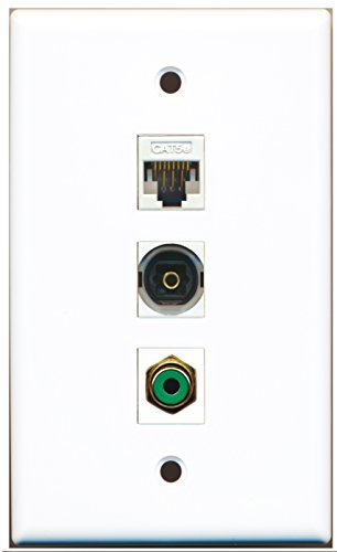 RiteAV - 1 Port RCA Green and 1 Port Toslink Digital Audio and 1 Port Cat5e Ethernet White Wall Plate