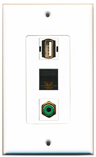 RiteAV - 1 Port RCA Green and 1 Port USB A-A and 1 Port Cat6 Ethernet Black Decorative Wall Plate Decorative