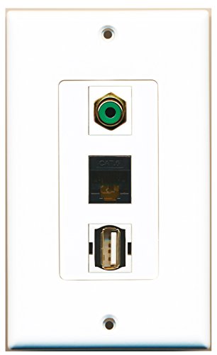 RiteAV - 1 Port RCA Green and 1 Port USB A-A and 1 Port Cat6 Ethernet Black Decorative Wall Plate Decorative