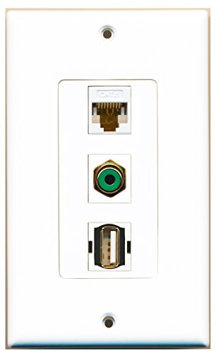 RiteAV - 1 Port RCA Green and 1 Port USB A-A and 1 Port Cat6 Ethernet White Decorative Wall Plate Decorative