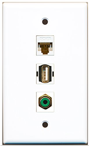 RiteAV - 1 Port RCA Green and 1 Port USB A-A and 1 Port Cat6 Ethernet White Wall Plate