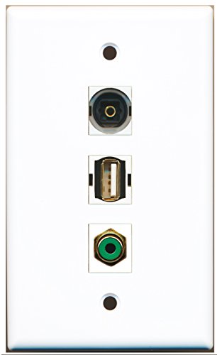 RiteAV - 1 Port RCA Green and 1 Port USB A-A and 1 Port Toslink Wall Plate