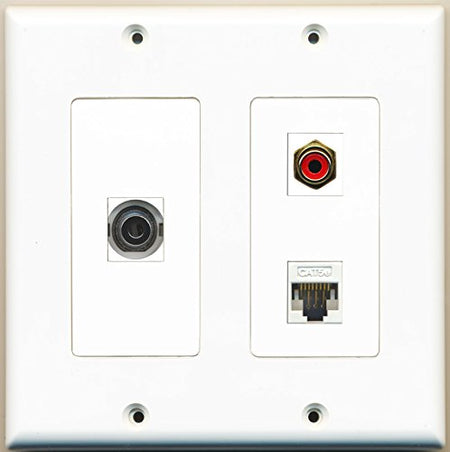 RiteAV - 1 Port RCA Red 1 Port 3.5mm 1 Port Cat5e Ethernet White - 2 Gang Wall Plate